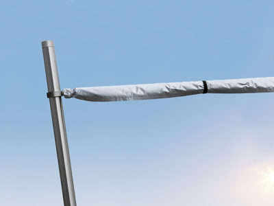 - Durch die optionale Höhenverstellung kann das Tuch abgesenkt werden und bietet Schutz bei tiefstehender Sonne